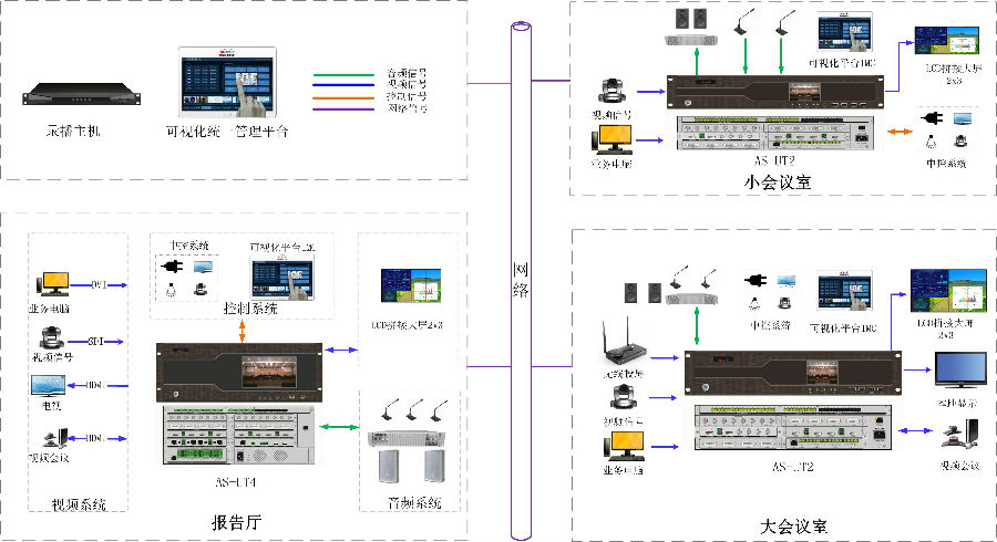 中控、音频、视频一体化可视化应用,部署方便、使用灵活、维护简单。