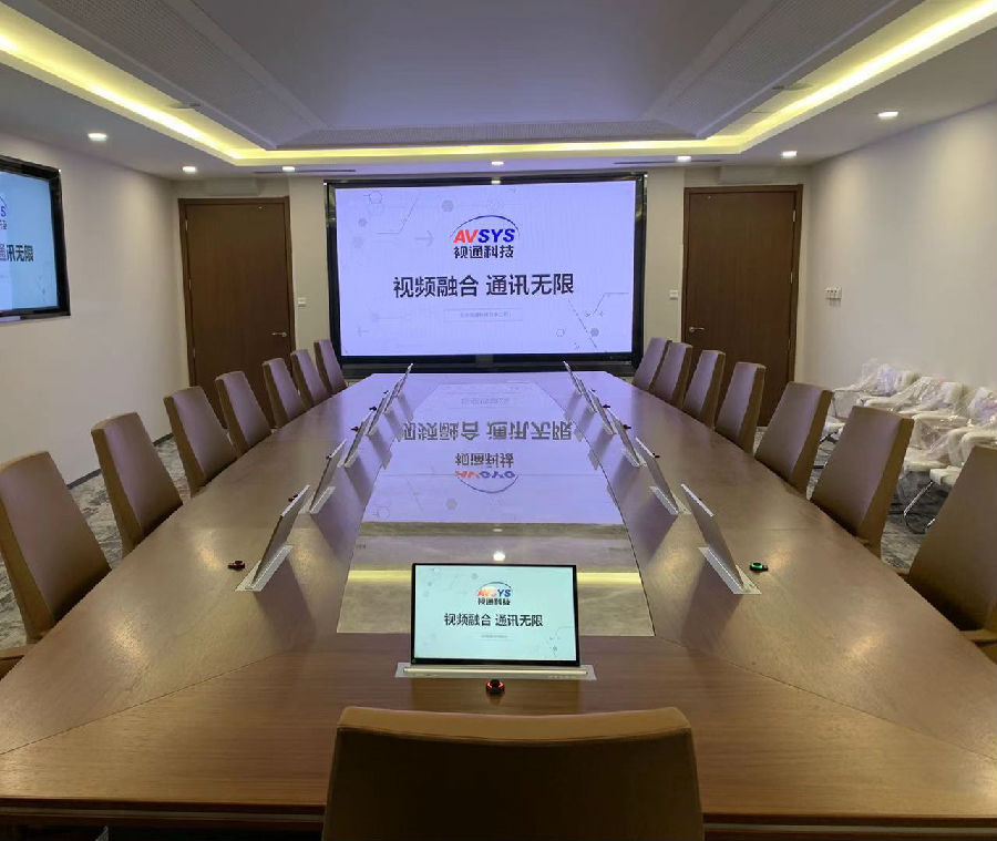 视通科技助力国企某投资公司会议室项目建设,本项目需实现视频或本地会议沟通交流,文档及宣传片共享演示,系统设备统一控制管理和会议录播等应用。为了满足用户要求,系统采用1台视通科技(AVSYS)自主研发生产的UT综合一体机作为多媒体会议系统的核心设备。