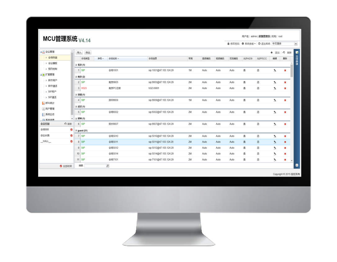 点对点和多点会议,网关功能,GK会务控制等。